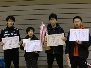 シングルスの部が、1月31日ダブルスの部が2月7日と2週にわたって開催されました。オープン大会にしてから酒田地区のほかに山形地区からの参加もあり、大変盛り上がった大会となりました。 シングルス男子は、佐藤祐人君(鶴二中)が初優勝、女子は、本間杏和さん(金丸クラブ)が3連覇(5度目)となりました。